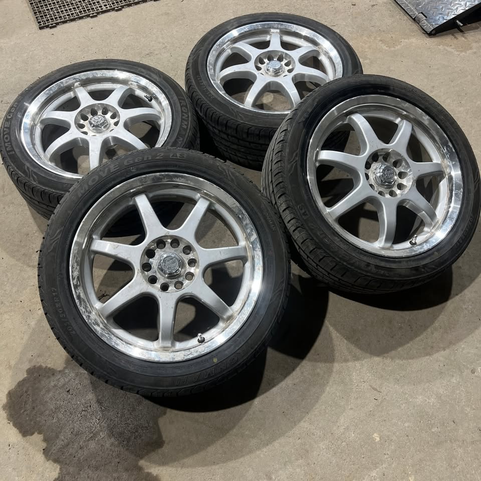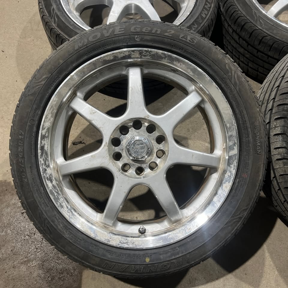Description:205/50R17 Ironman all season tires in excellent condition. Has about 80%-90% tread remaining. Mounted on aftermarket alloy wheel 5x112 / 5x114.3 bolt pattern +42 offset